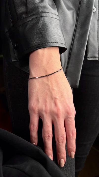 Bratara Tennis B000425 din aur roz 14K cu diamante negre face parte din Colectia Bijuterii La Rosa, este disponibila la comanda si poate fi realizata in 2 saptamani, avand lungimea si nuanta de aur dorita