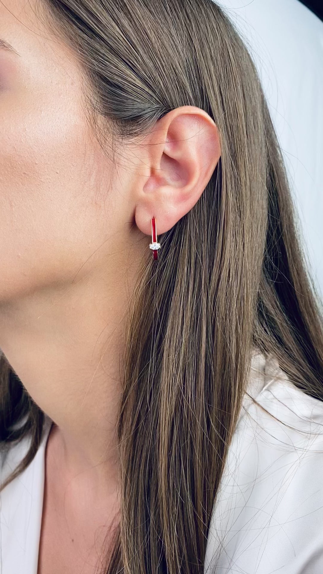 Cercei din aur galben 14k cu diamant marquise si email rosu