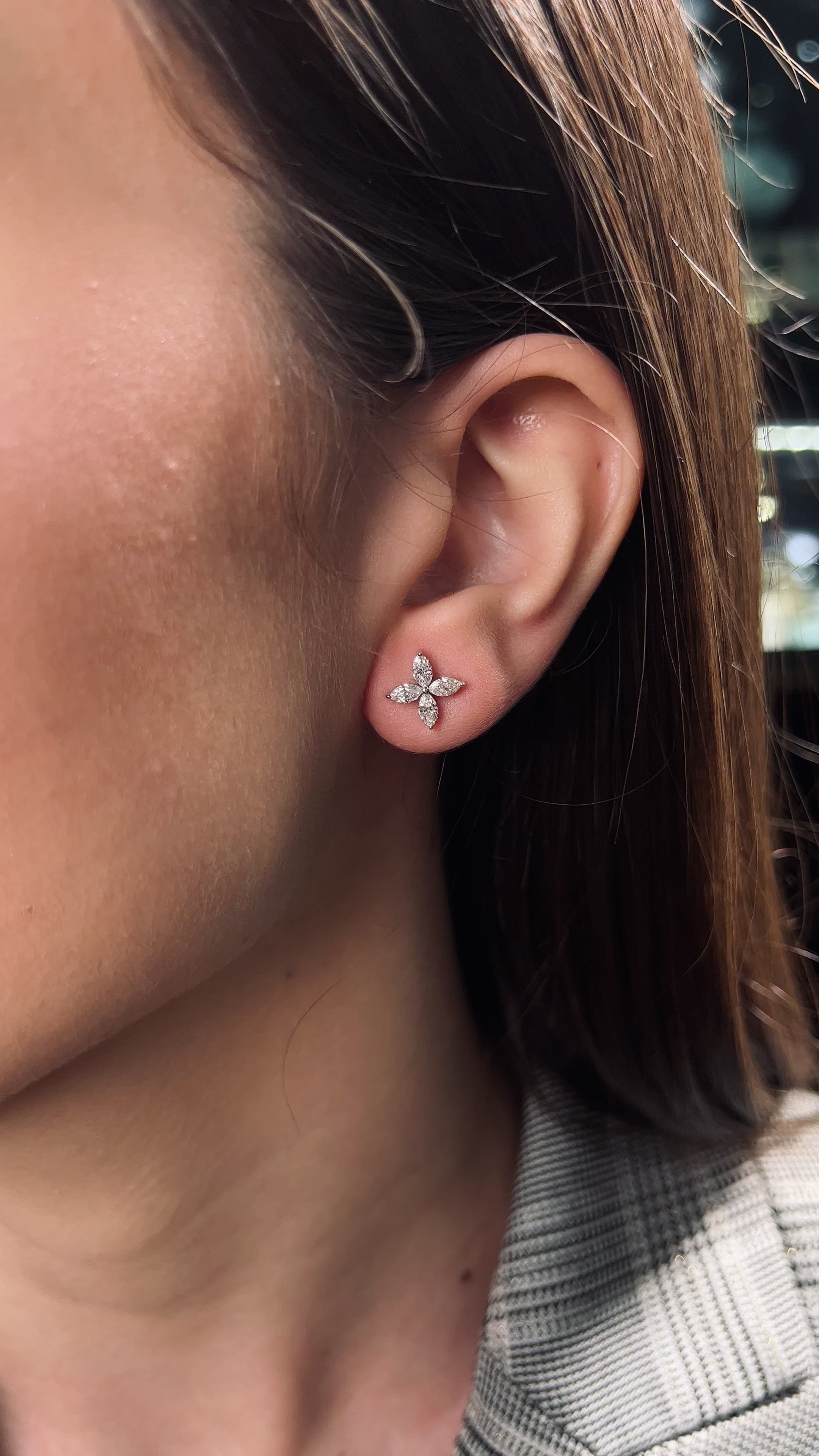 Acești cercei minunați au 4 diamante marquise dispuse în formă de floare - un design minimalist și simplist, care va adăuga o notă de eleganță. Designul simplu, dar sofisticat al acestor cercei stud cu diamante va face o declarație uimitoare și va deveni cu siguranță o parte prețioasă a colecției dvs. de bijuterii. Fie că participați la un eveniment formal sau pur și simplu căutați să adăugați puțină strălucire în ziua dumneavoastră, acești cercei cu diamante sunt alegerea perfectă.