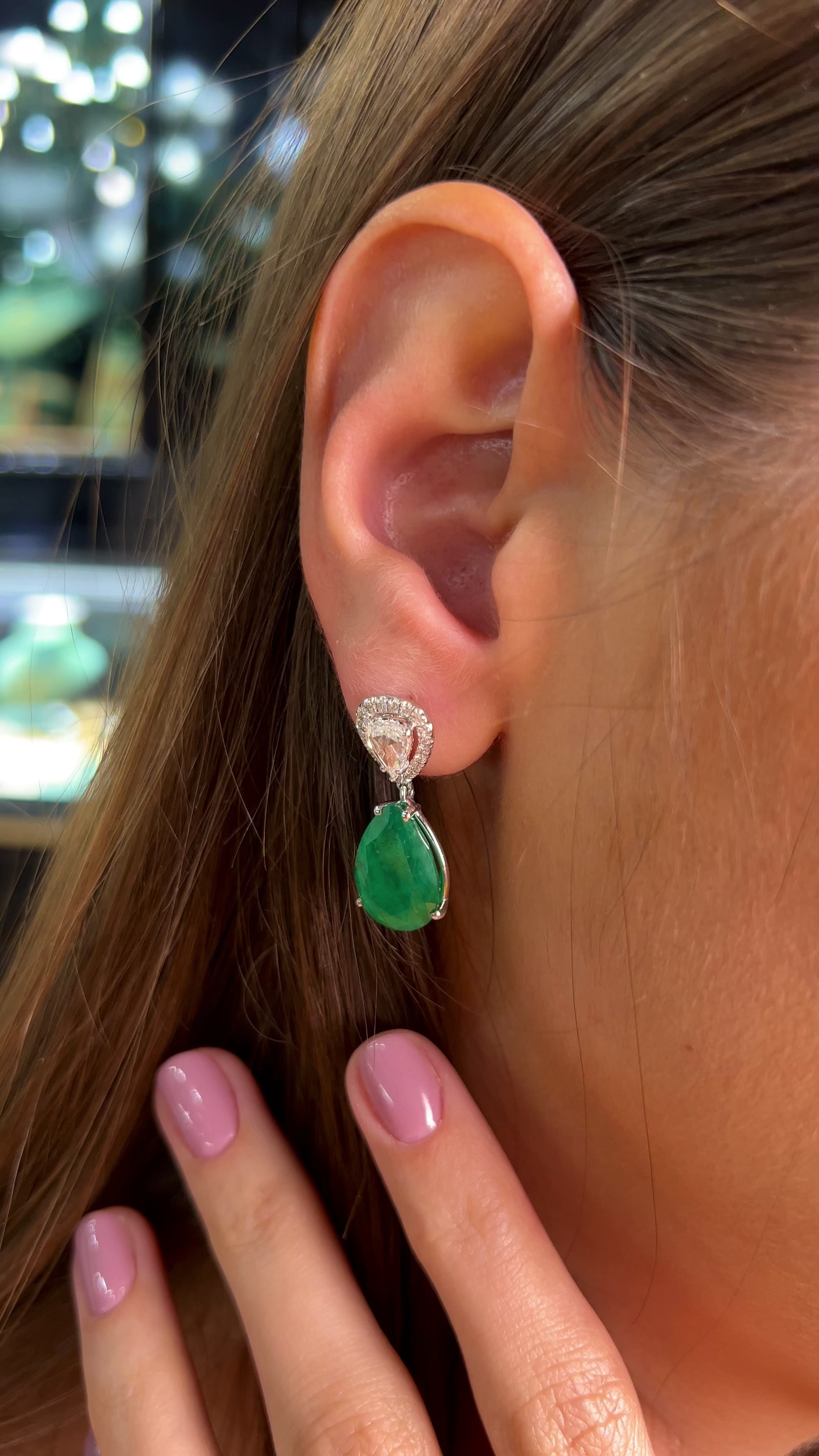 CERCEI KP17498 DIN AUR ALB 18K FORMA LACRIMA CU DIAMANTE NATURALE SI SMARALD