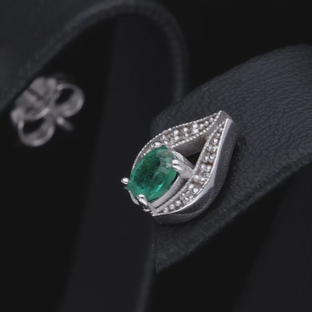 Cercei LDEA0335 din aur alb 14k cu Diamante Naturale si smarald
