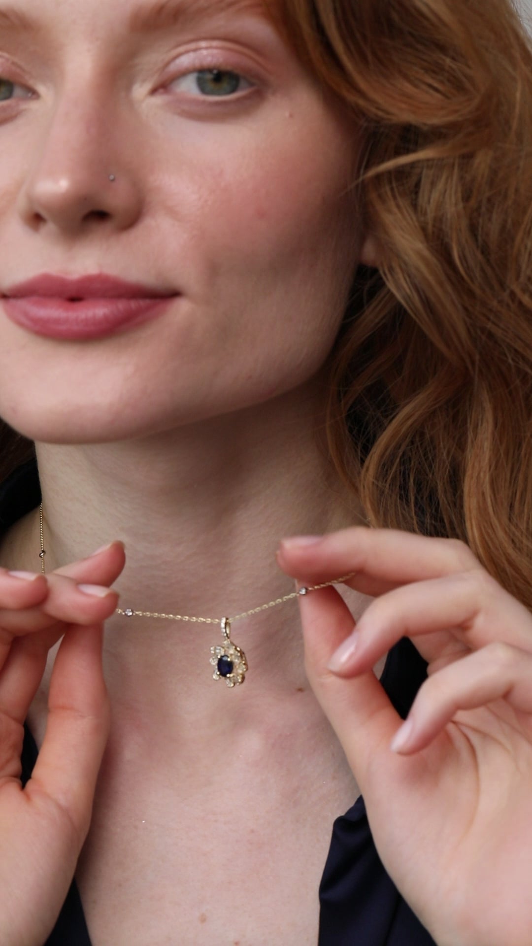 Colierul CN0547M este o declaratie magnifica de eleganta si stil. Combinand aurul galben cu diamantele stralucitoare montate de jur imprejurul safirului oval, aceasta bijuterie este o piesa de colectie care va completa orice tinuta, perfectă pentru ocazii speciale sau pentru momente cu totul unice din viața oricărei femei.