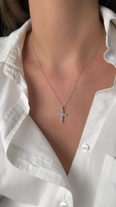 COLIER CR0013 DIN AUR ALB 14K CU DIAMANTE NATURALE FORMA CRUCE