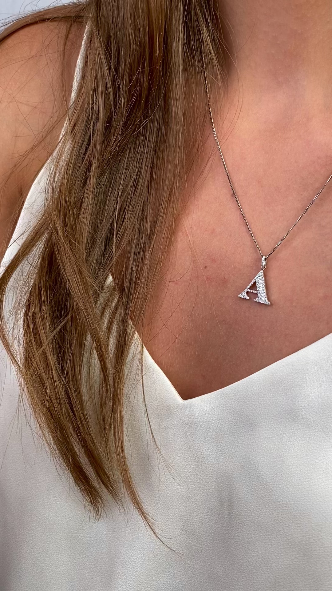Colier cu initiala A din aur alb de 14k cu Diamante Naturale baghete