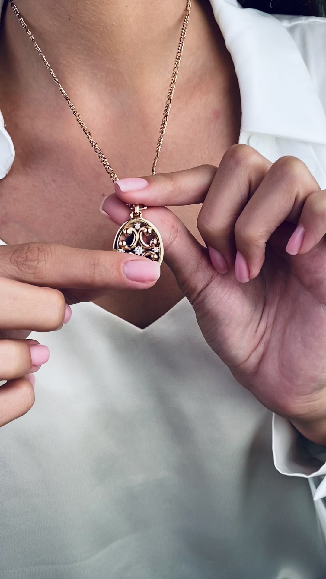 Colierul cu poza oval din aur roz de 14k cu diamante include si personalizarea cu o fotografie, pe care le puteti trimite la adresa de email info@bijuteriilarosa.ro specificand numarul comenzii la subiect