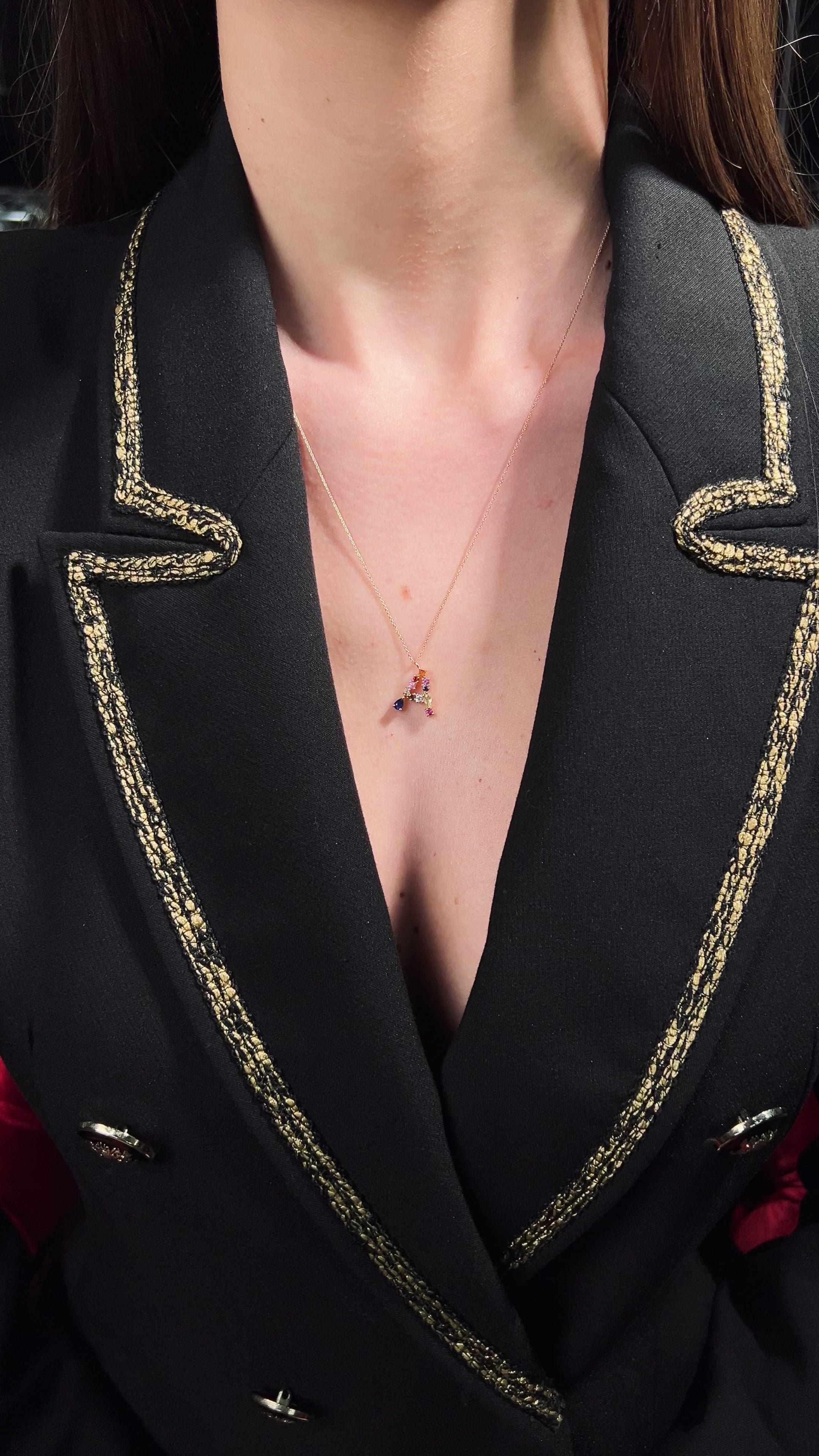 Colier initiala A din aur roz 14k cu safire multicolore 0.54ct