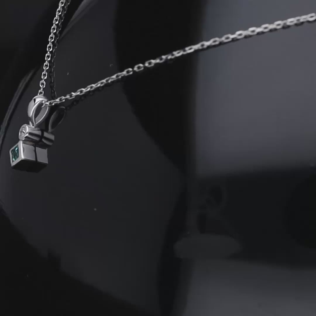 Colier LDNA0332 din aur alb 14k cu smarald romb cu Diamant Natural rotund