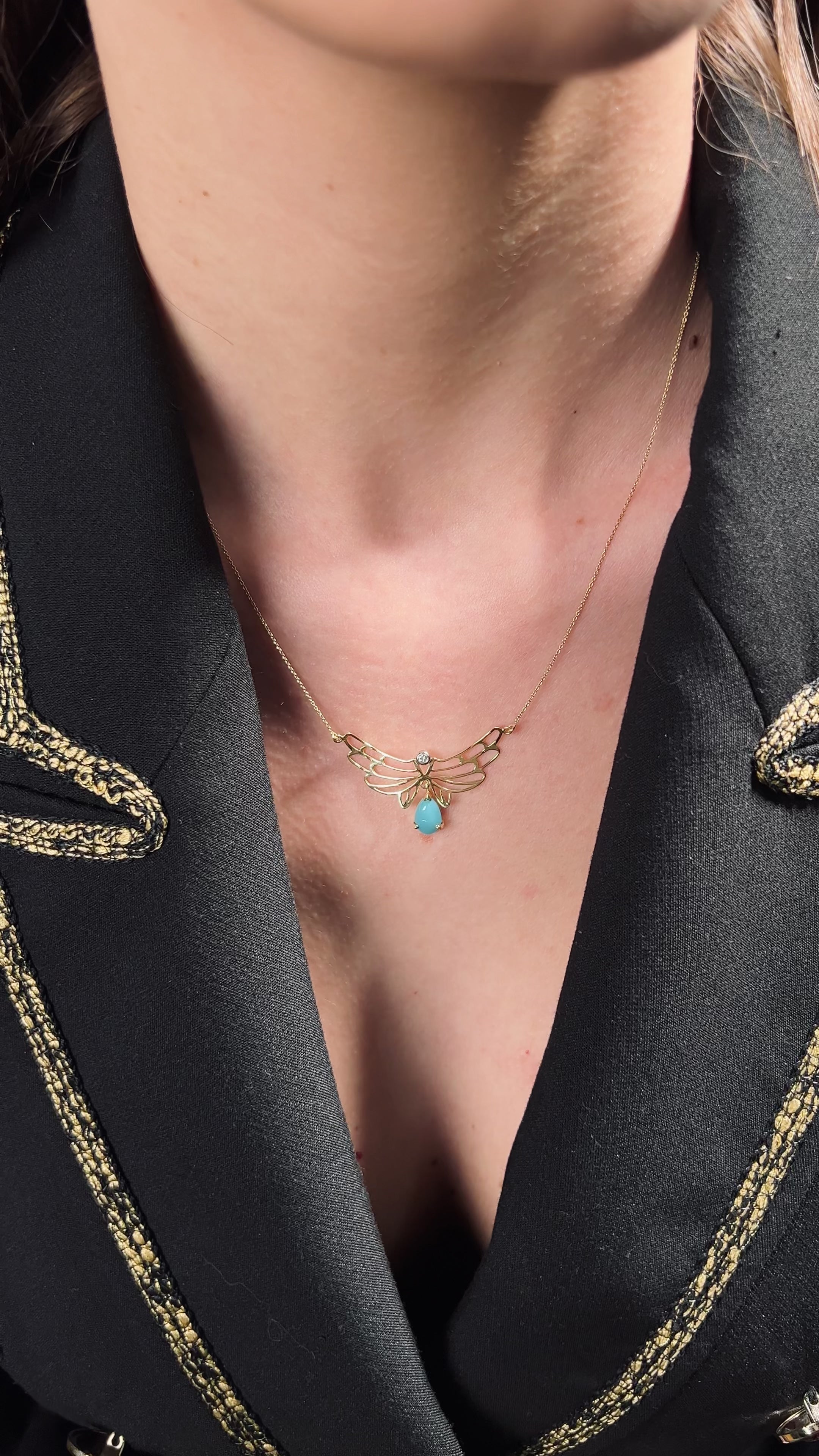 Colier LDNA0368 din aur galben 14k cu Diamant Natural si pietre semipretioase
