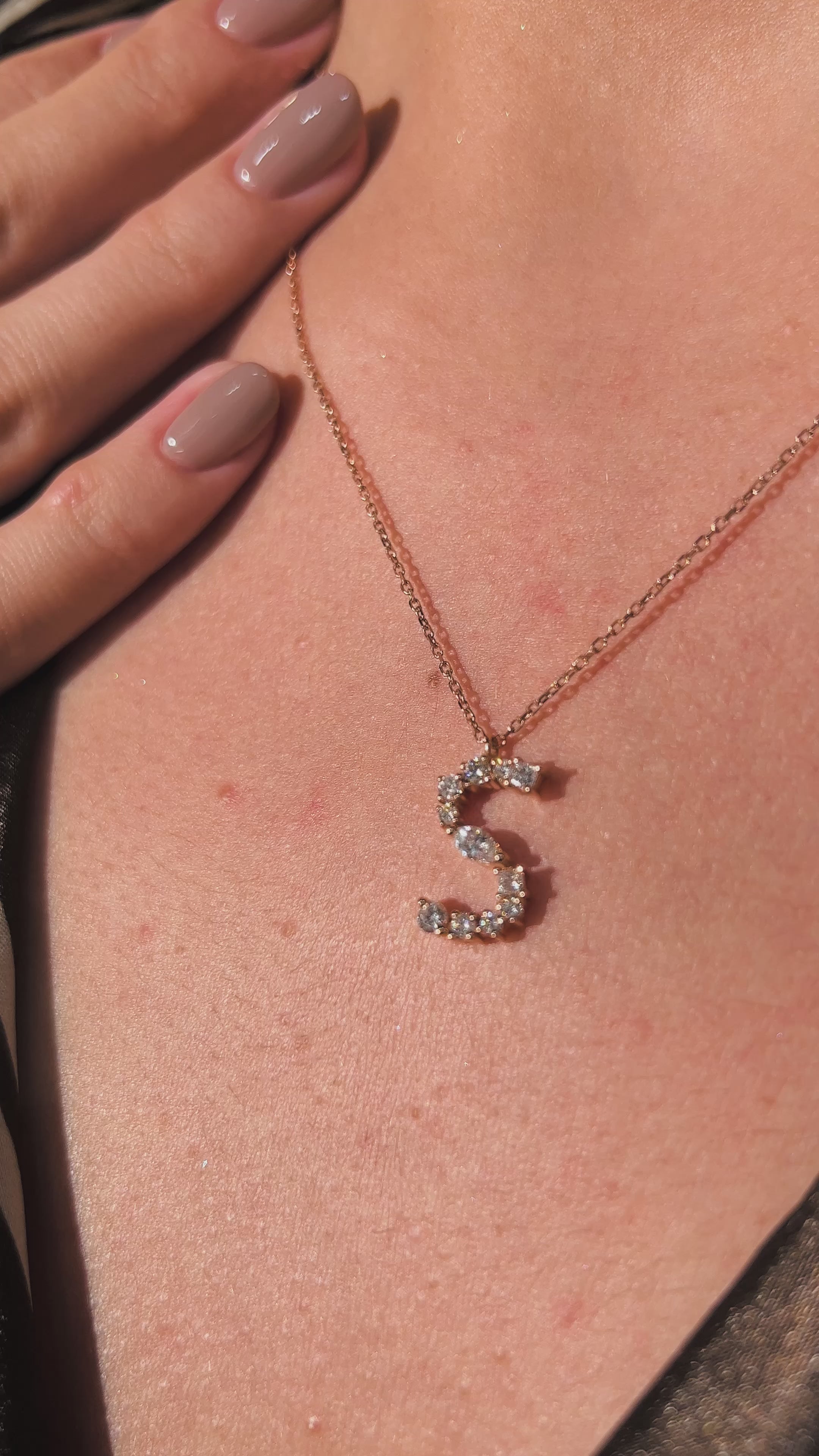 COLIER N001016 DIN AUR ROZ 14K INITIALA S CU DIAMANTE NATURALE