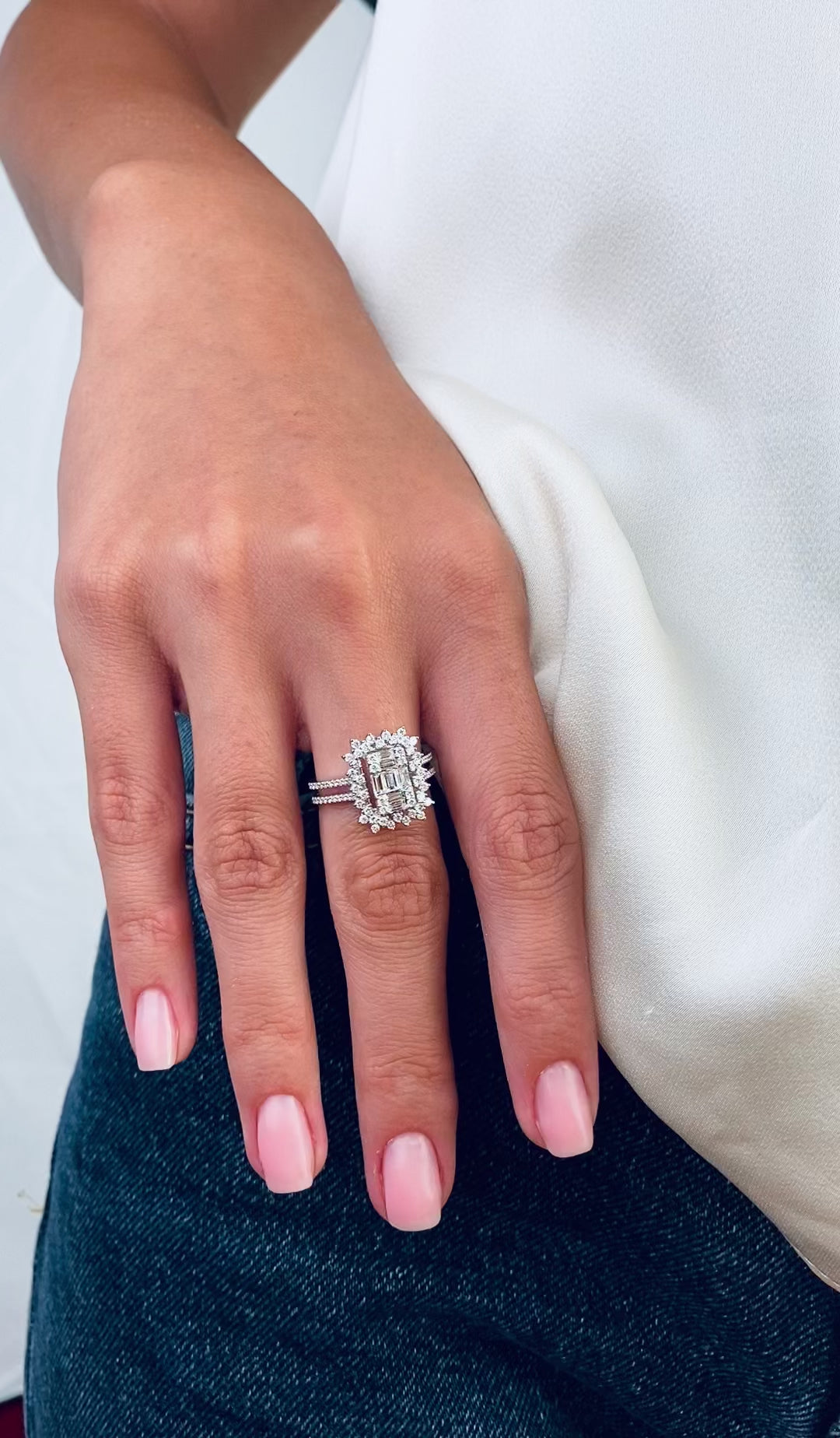 Inel de Logodna ring dublu din aur alb de 14k cu Diamante Naturale baghete