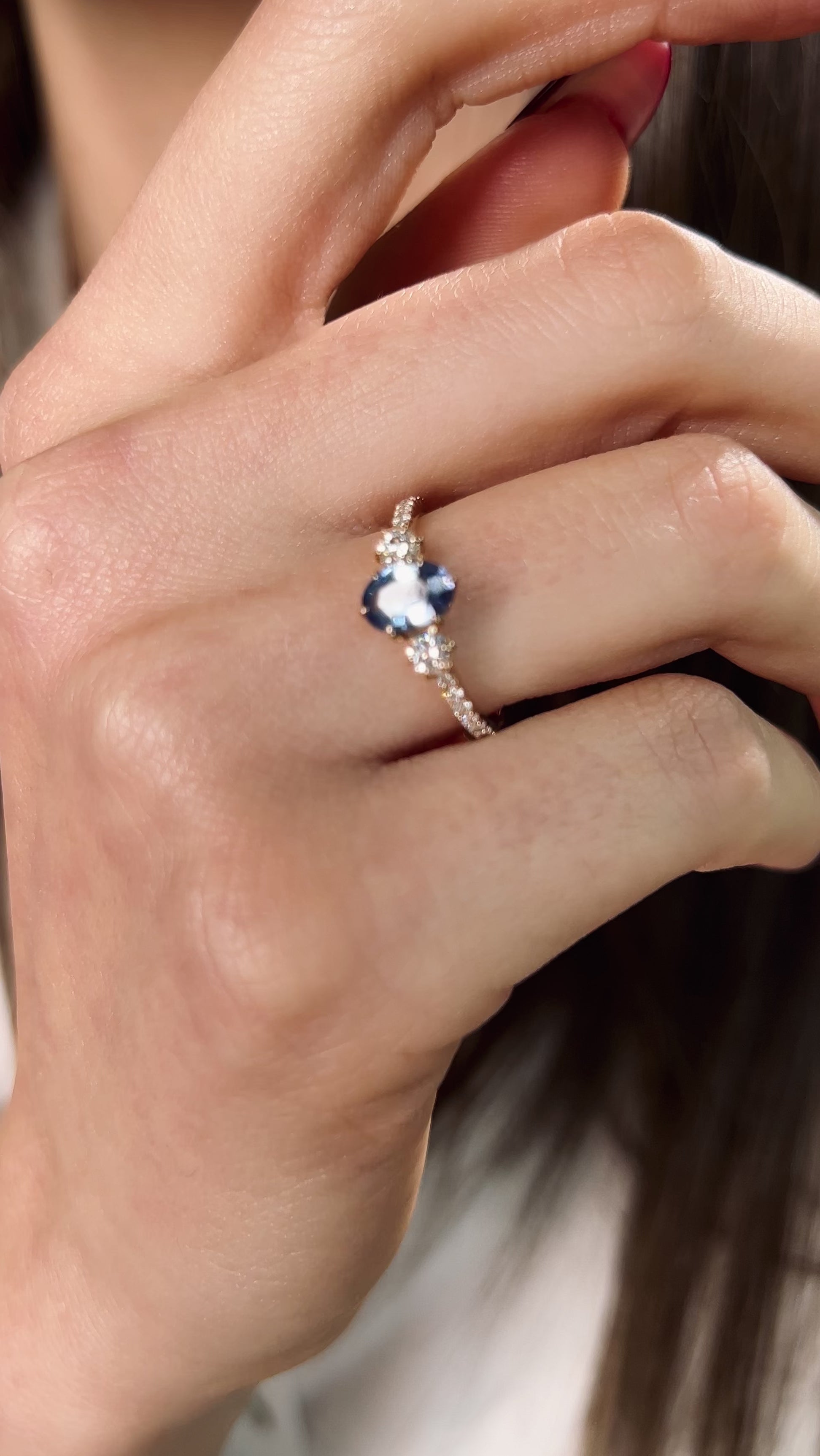 Un simbol al eleganței și al iubirii eterne, acest inel de logodnă impresionează prin armonia dintre finețea aurului roz și frumusețea pietrelor prețioase. Piatra centrală, un topaz oval de 0,83ct, dezvăluie nuanțe intense de albastru, evocând liniștea cerului și profunzimea mării. De o parte și de alta, diamantele naturale de 0,20ct, împreună cu pavé-ul delicat de pe braț, amplifică luminozitatea și conferă bijuteriei un aer sofisticat și atemporal.
