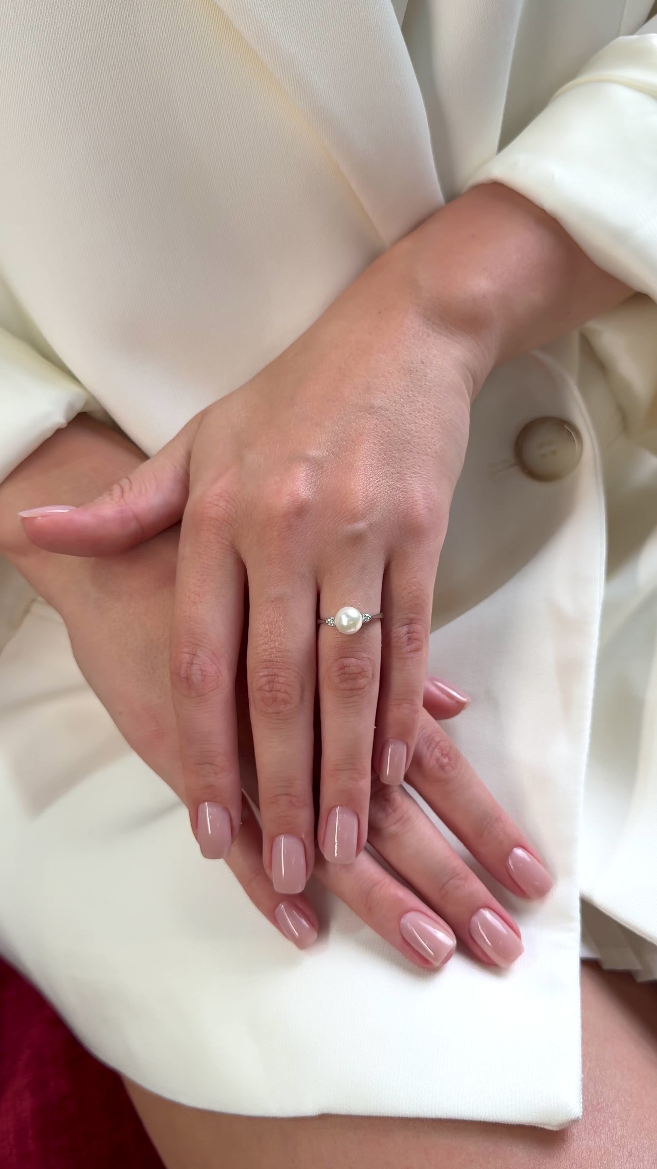 Un design rafinat ce pune în valoare frumusețea clasică a unei perle Akoya, acompaniată de două diamante naturale de 0.06ct dispuse simetric. Lustrul impecabil al perlei și strălucirea pură a diamantelor creează un echilibru perfect între delicatețe și eleganta suprema. Alege inelul La Rosa, o bijuterie atemporală, ideală pentru a completa ținute elegante sau pentru a marca momente speciale cu o notă de distincție.