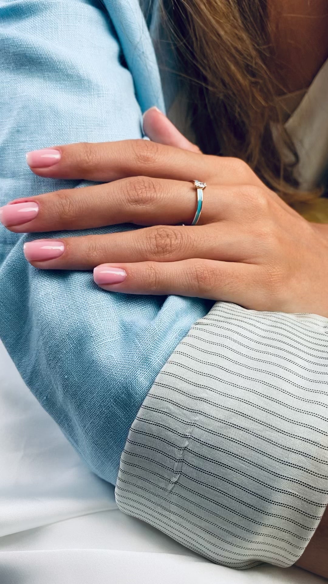 Inel din Aur Roz 14K cu Diamant Natural Marquise Si Email Turcoaz