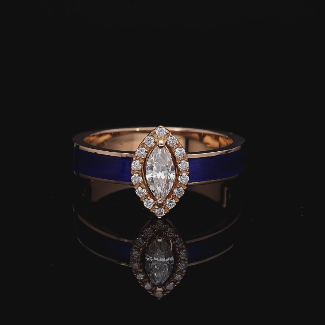Inel ISC102 aur roz 18k cu diamant natural marquise 0.31ct si email navy