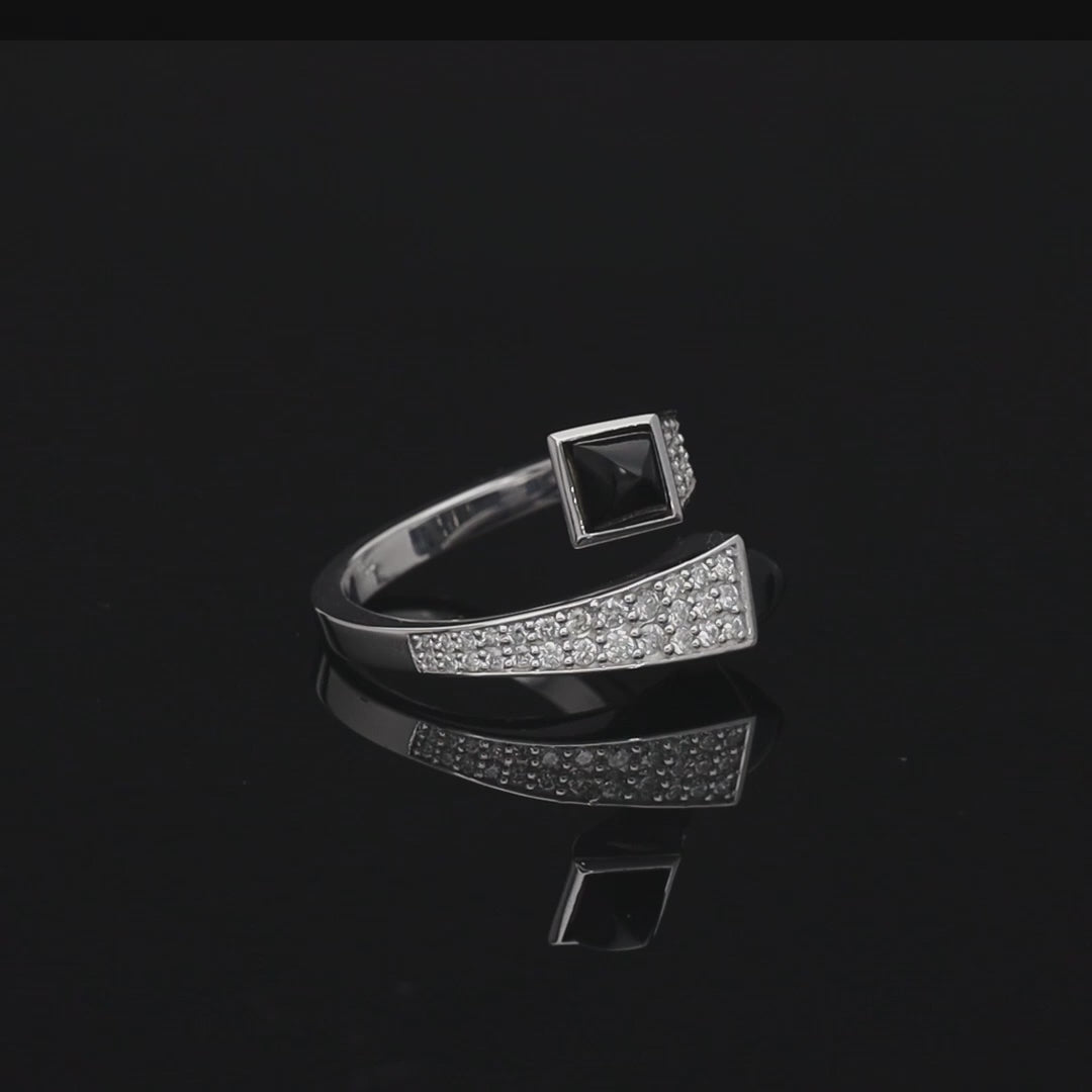 O creatie a atelierului La Rosa, acest inel din aur alb de 18k îmbină armonios arhitectura designului contemporan cu rafinamentul bijuteriilor de înaltă clasă. Parte din colectia Mosaique, piesa dezvăluie puterea contrastelor și frumusețea detaliilor minuțios realizate. Cele două extremitati sculpturale sunt înnobilate de topazul negru de 0.80ct, o piatră prețioasă profundă, misterioasă și elegantă. Întreaga suprafață este luminată de un pavé spectaculos din diamante naturale totalizând 0.50ct, care adaugă o strălucire sofisticată, atrăgând privirile la fiecare mișcare a mâinii. Liniile fluide și deschiderea îndrăzneață a designului creează o estetică modernă, dar atemporală, făcând din acest inel o piesă statement, perfectă pentru femeia care își dorește bijuterii cu personalitate, artă purtabilă ce spune o poveste despre forță, rafinament și unicitate.