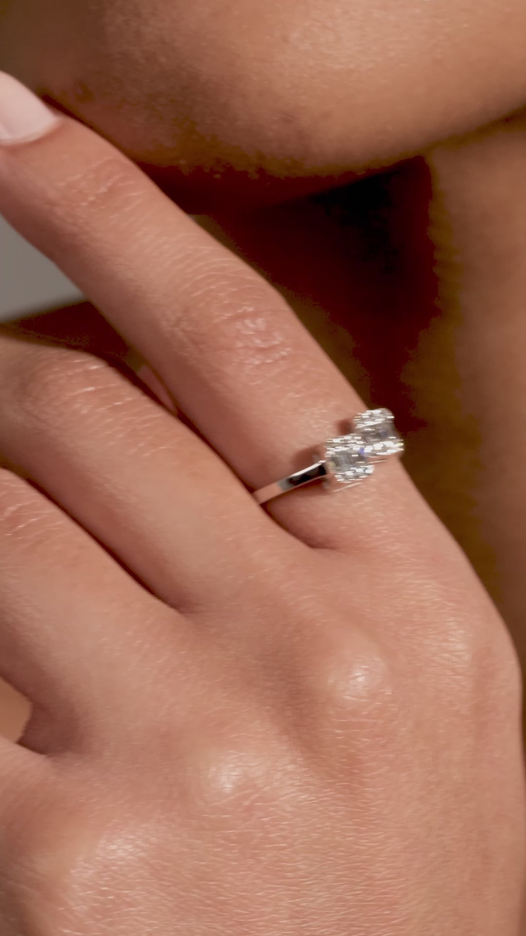 Acest inel elegant este o alegere remarcabilă pentru cele care apreciază bijuteriile clasice si minimaliste. Realizat din aur alb și împodobit cu diamante rotunde si baghete intr-o montura asimetrica, aceasta piesa emană eleganță și rafinament, si nu trebuie sa lipseasca din nici o colectie de bijuterii