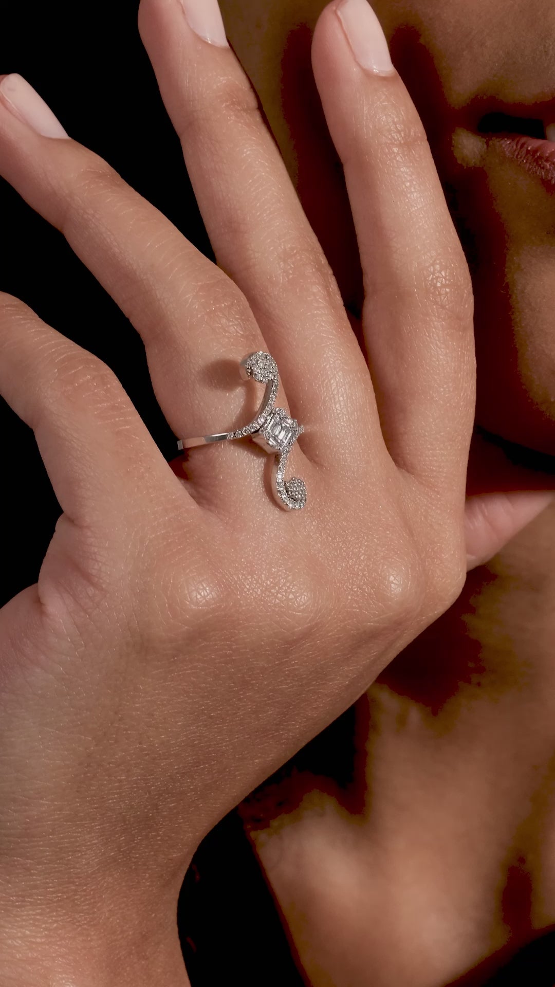 Inel Md45022 Forma Ondulata din Aur Alb 14K cu Diamante Naturale