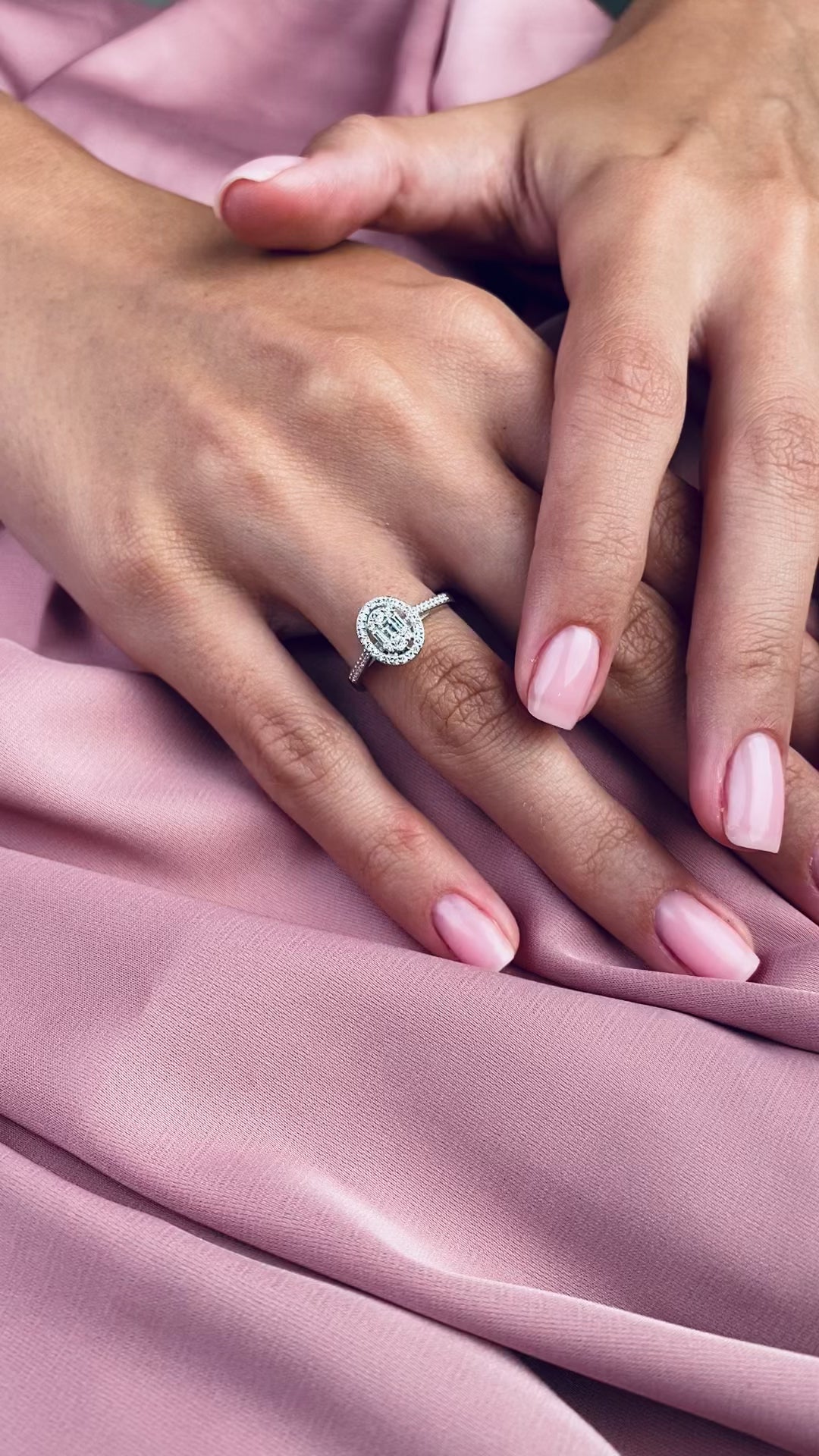 Inel Oval din Aur Alb De 14K cu Diamante Naturale Baghete
