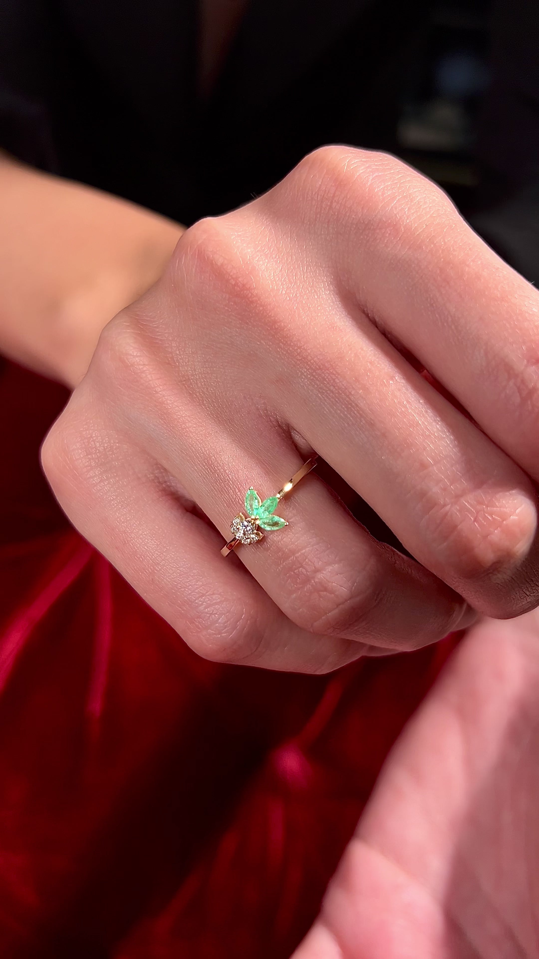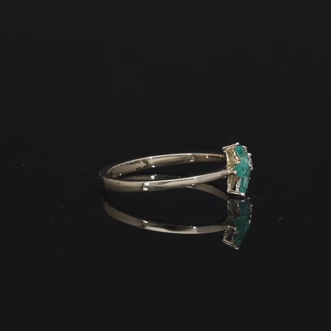 Inel R000467 din Aur Galben 14K cu Diamante Naturale Si Smaralde Forma Marquise