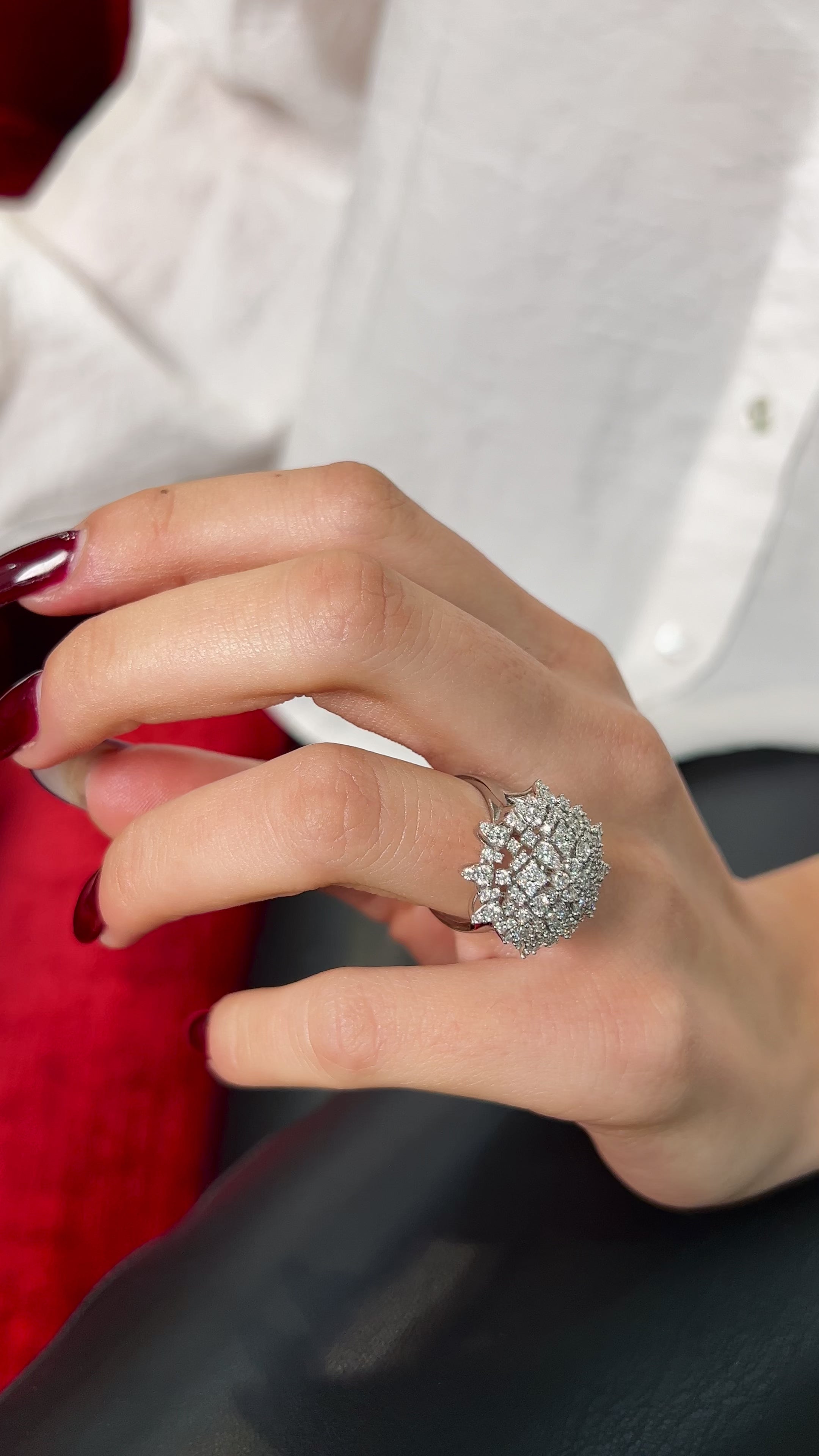 Inel R001465 din Aur Alb 14K Forma Ovala cu Diamante Naturale