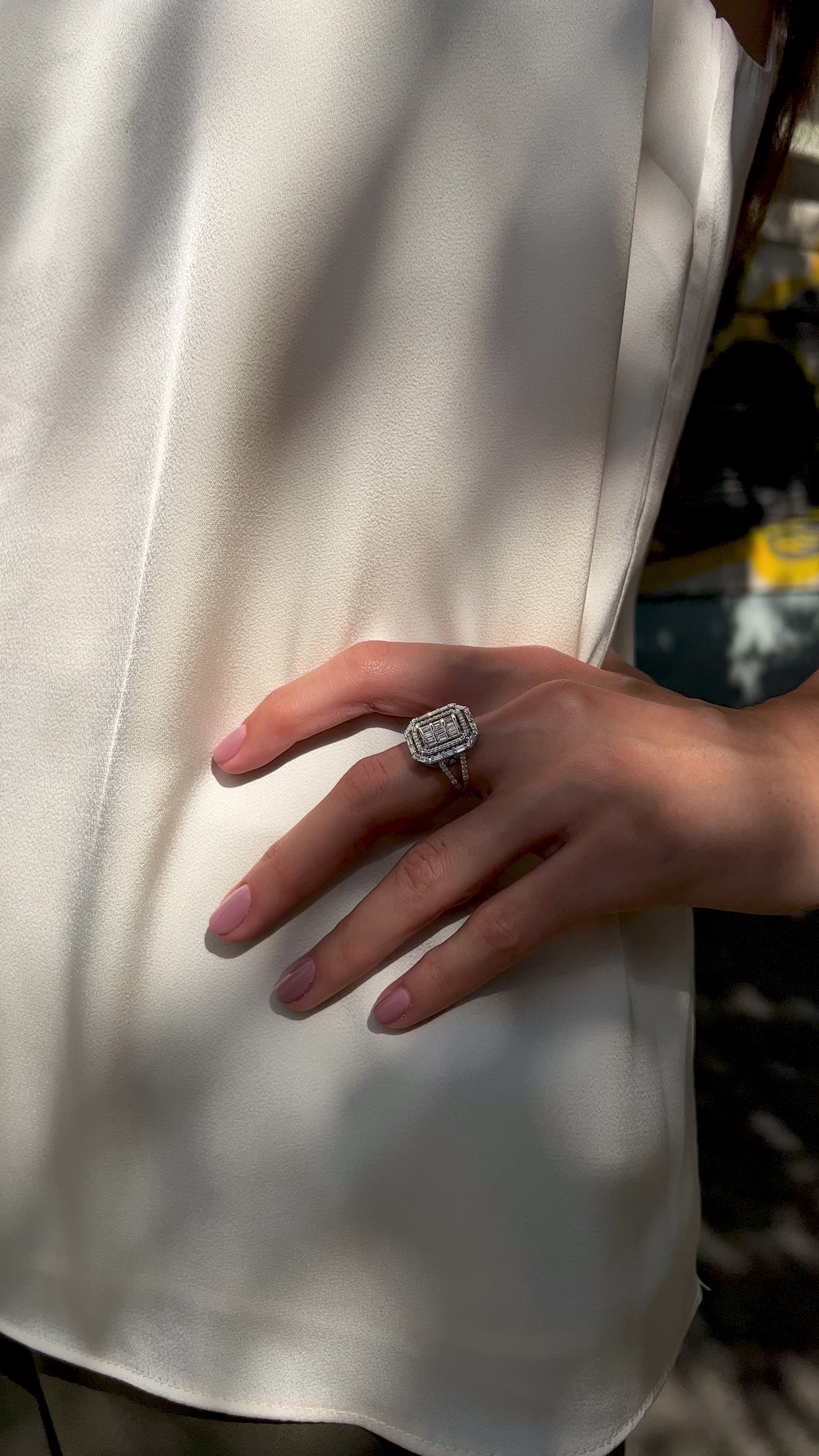 Inel R002659 din Aur Alb 14K Forma Dreptunghi Mare cu Diamante Naturale