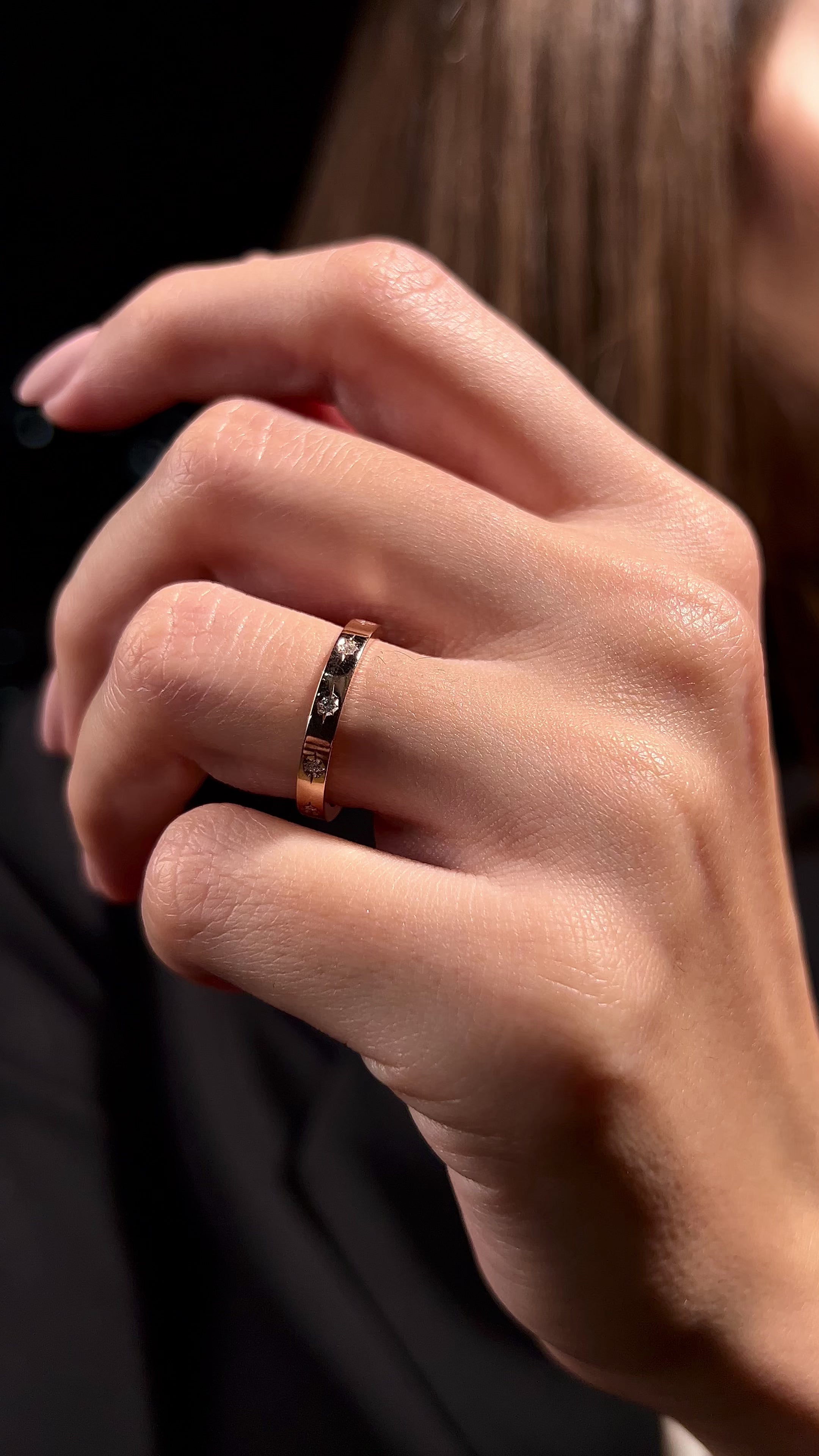 Inelul V000474 din aur roz 14k, cu diamante, cucereste prin simplitatea si rafinamentul sau, aducand o nota de eleganta oricarei tinute