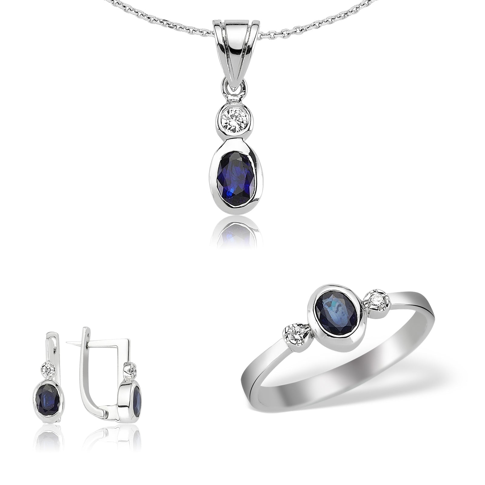 Set LRST149 din aur alb 18k forma ovala cu diamante si safir