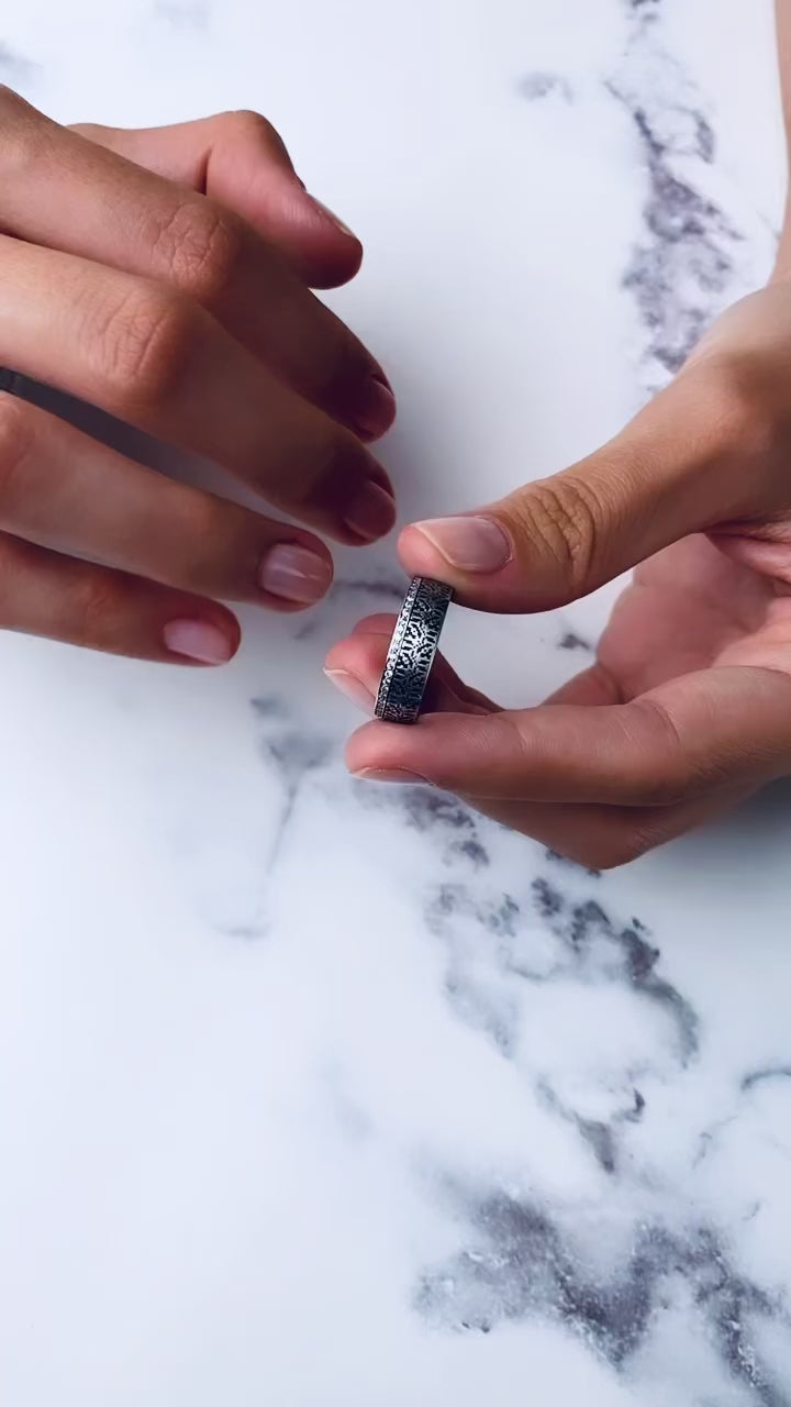 Verighetele DOBROGEA fac parte din Colectia Manual La Rosa si se remarca prin motivele grafice impresionante, pe fond negru, specifice zonei. Afisand un design elegant, realizat impecabil, cu accentul pus pe detalii, verighetele din aur alb sunt alegerea perfecta pentru cuplurile ce vor sa-si oficializeze relatia de iubire punand pret pe valorile traditionale romanesti.