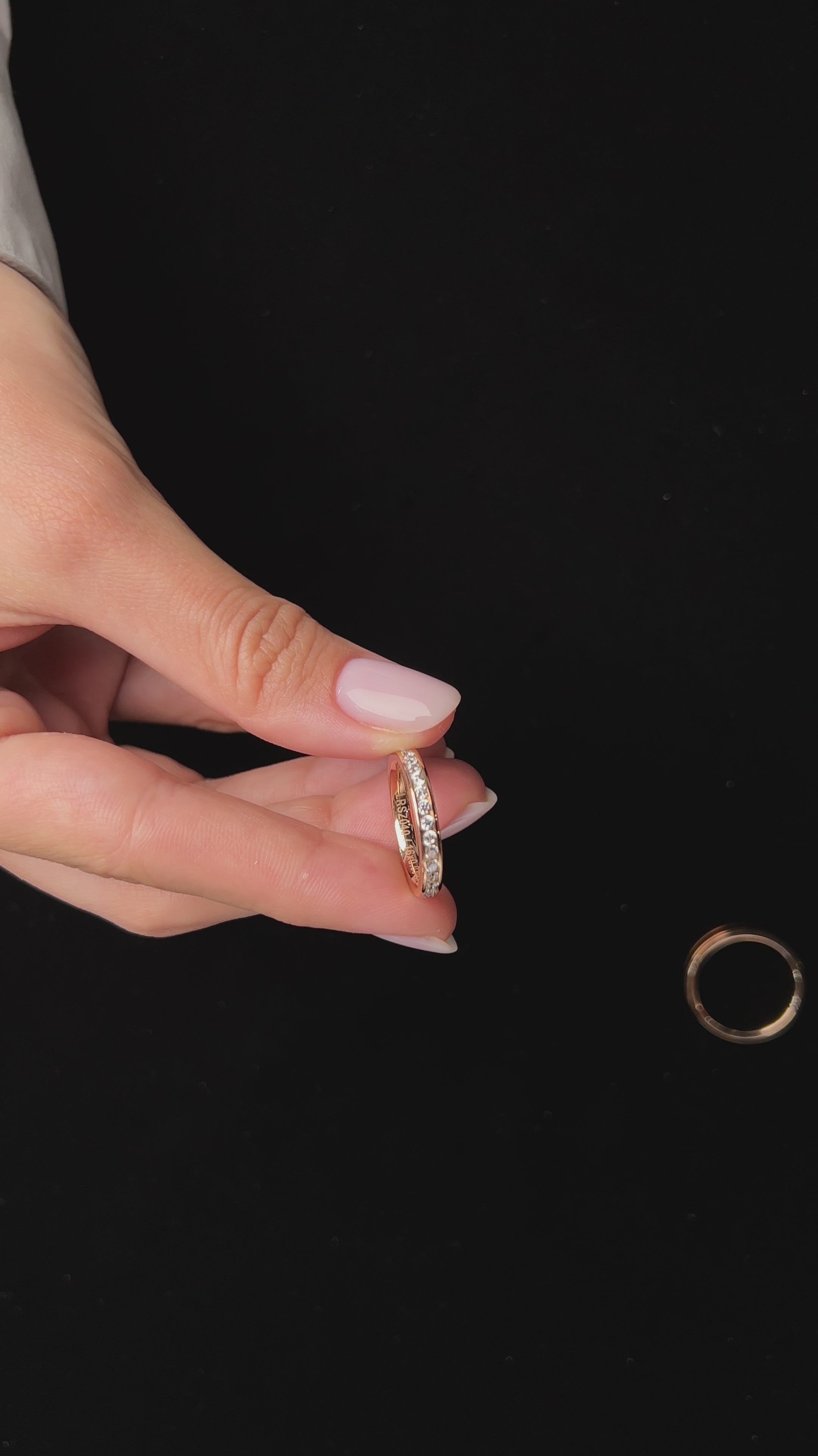 Verighetele Lrsz040 sunt o alegere deosebita pentru cei care doresc să adauge strălucire și eleganță momentului unic din viata lor, acestea fiind realizate din aur roz cu diamante montate într-un stil "channel" ce creeaza un efect strălucitor. Aspectul lor inedit cu siguranta va trece testul timpului si va face ca legatura dintre cei doi miri sa fie si mai puternica.