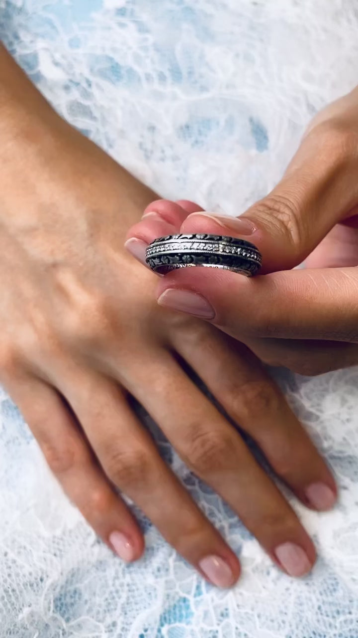 Modelul de verighete Maternian face parte din Linia Broderie Venetiana si impresioneaza prin complexitatea detaliilor. Prezentand un design ce ne poarta cu gandul la era Renasterii, verighetele sunt realizate impecabil din aur alb. Modelul este destinat cuplurilor puternice, care prefera o bijuterie impunatoare, dar in acelasi timp eleganta.